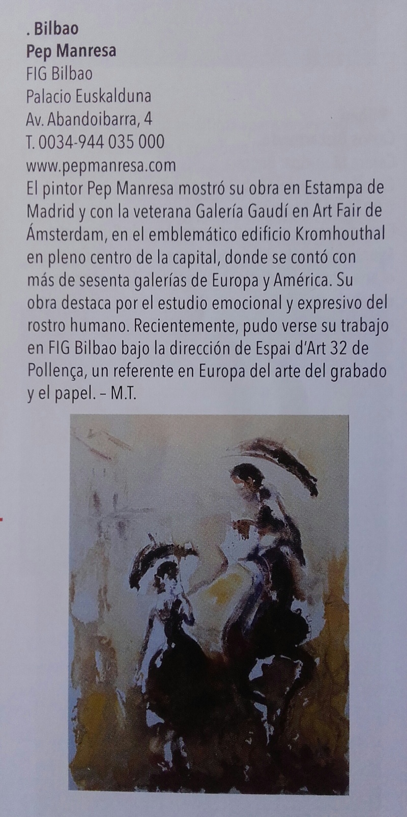 Obra de Pep Manresa en la AAF de Amsterdam, bajo la dirección de la Galería Gaudí, en el edificio Kromhouthal en pleno centro de la capital, con más de sesenta galerías participantes. Revistart – revista nacional de las artes.