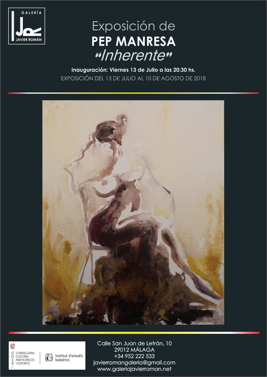 La Galería Javier Román tiene el placer de presentar al artista Pep Manresa. Una obra singular que abarca el mundo emocional absoluto fusionando difusas figuras, expresiones y rostros al grito emotivo del sentir del ser humano. Del 13 de julio al 10 de agosto de 2018.